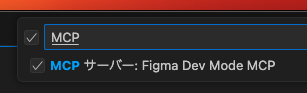Copilotのツール画面を開き、検索画面で「MCP」と入力すると「Figma Dev Mode MCP」という項目が追加されているので、チェックをいれます。