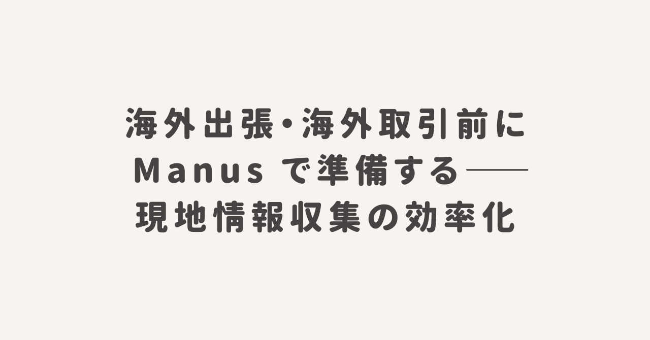 - 出力の責任はユーザーにある:Manusが収集・整理した情報を使って何かを判断・行動する際の責任は使う側にある。正確性の確認と文脈への解釈は人間の仕事だ
