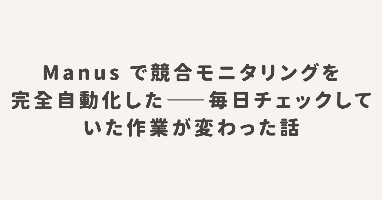 Manusを使うことで情報収集の効率が上がるのは良いことだ。しかしその効率化の恩恵を最大化するために、「情報収集の先にある力」を同時に育てていくことが、AIが普及する時代に必要な姿勢だと思っている。