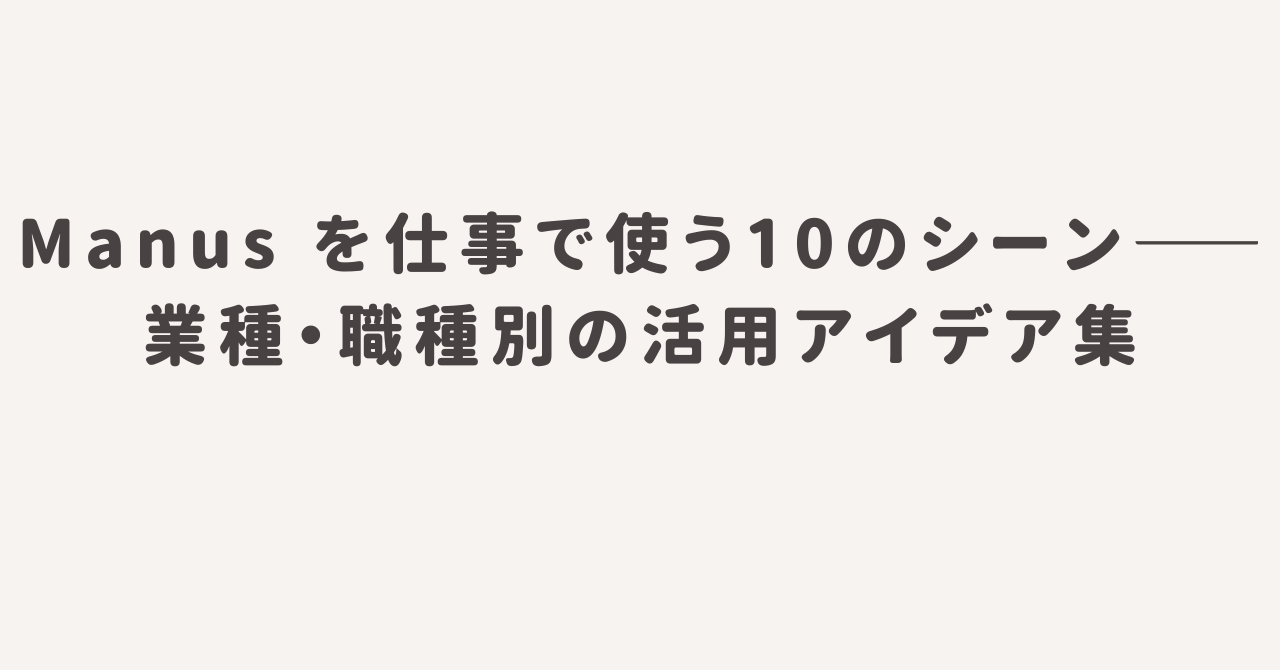情報収集のコストが下がった分だけ、判断・解釈・意思決定に使える時間が増える。それがManusを日常的に使い続けることで実感できる変化だ。