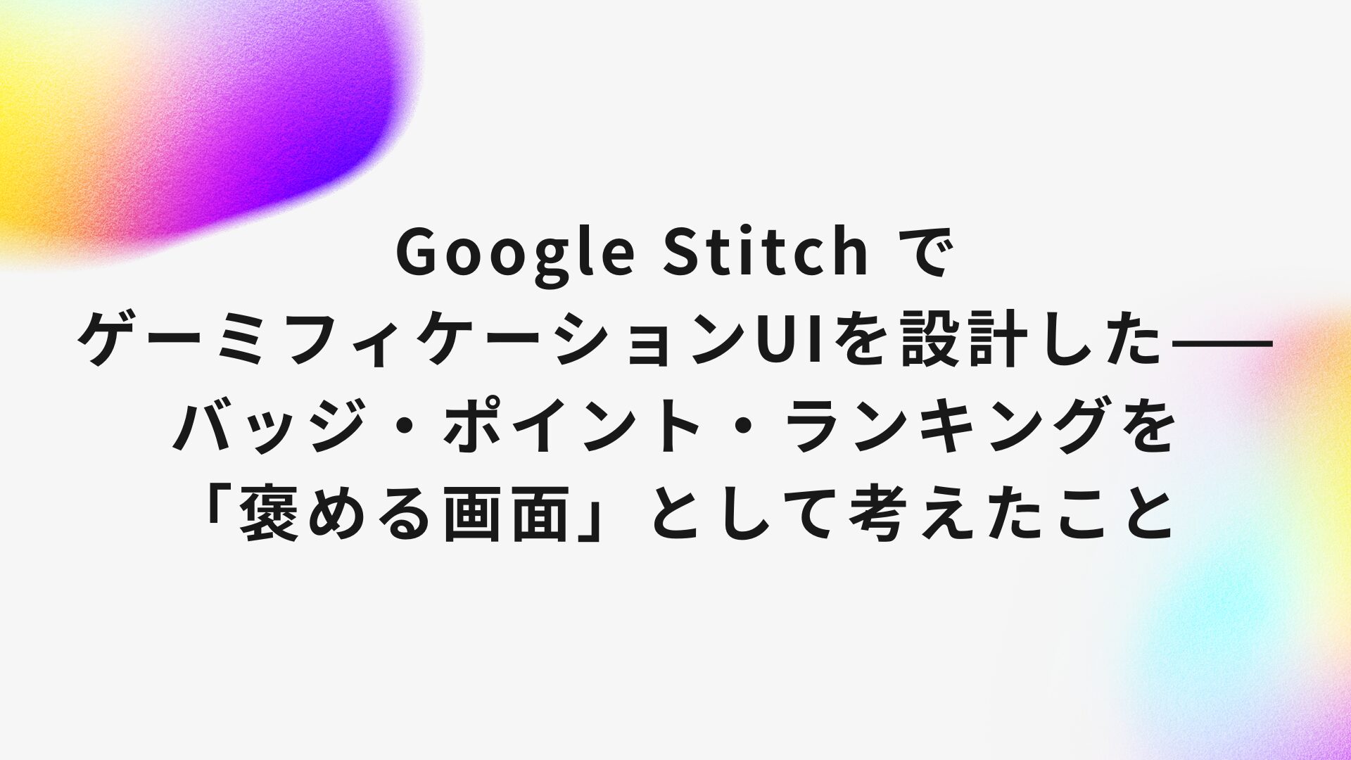 結論から言うと——ゲーミフィケーションUIの設計で最も重要なのは「達成感の演出」と「進捗の可視化」だ。バッジやポイントを表示するだけでなく、「なぜそれを得たのか」「次に何を目指せばいいのか」が画面から伝わることで、ユーザーの継続モチベーションが高まる。Google Stitch でこれを設計するとき、「褒める画面」というフレームで考えることが出発点になった。